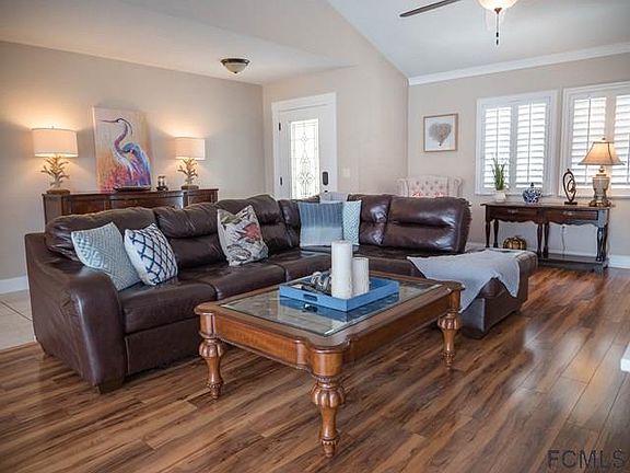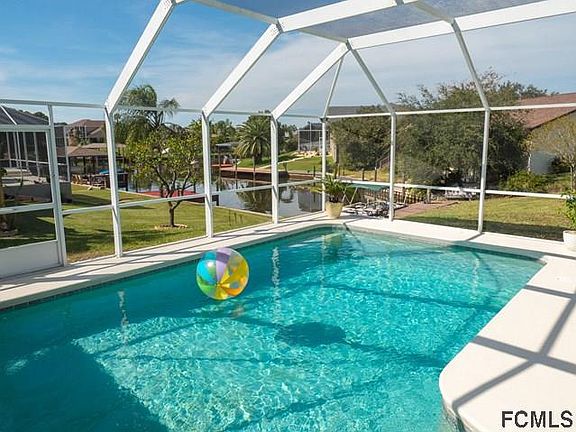 Don't miss out on this real gem LOWEST priced 4 bed / 2 bath pool home on a salt water canal in Palm Coast. On a huge 15,675 sq ft corner lot this home has plenty of yard for entertaining while enjoying a wide canal & amazing sunset views. From the moment you enter this beauty you'll admire the high-vaulted ceilings and spacious living area. Enjoy a wonderful view of the large screened in pool area overlooking the canal from the plentiful glass sliders & wide windows. Kitchen is roomy, hosting plentiful cabinet & counter space for that family chef. All new stainless appliances 2016. Great dining room area with a gas burning fireplace. Dual sinks in main & master bathrooms. Side entry to pool area. Tastefully upgraded, this home really has plenty of character & loaded with extra features. Plantation shutters, tall baseboards, elegant door casing, crown molding, wainscoting, newer roof, new AC 2011, water heater 2012. So much more. A real must see... Schedule a showing today