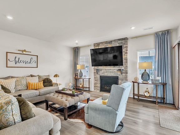 Beautiful stacked stone fireplaceCovered front porchGenerous loft areaLarge islandWall ovenOpen layoutLarge secondary bedroom