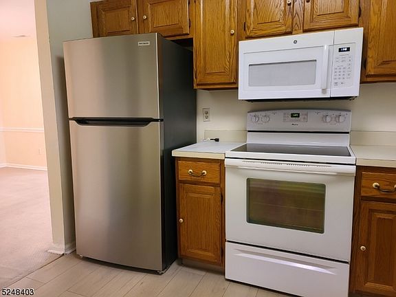Fairfax I Model Washington Village. Top-level 2 bedroom, 2 bath with Bonus Room (den) end-unit condominium with 1 car garage, private deck, abundant private storage room in basement. Landlord will use very small area of storage. Newer Washer Dryer, Fridge. Renovated Master Bathroom. Tub shower in main bath and stall shower in master. Recessed lighting in Living Rm. Bonus room: Den with wood burning fireplace. Tenant to pay $41.66 month to landlord for sewer. Renter's Insurance required. On-site community manager, pool, playground, tennis courts, clubhouse, bocce court. 326-acre well-manicured community borders over 100 acres of undisturbed nature. Commuter's delight! Near shopping, medical, restaurants and transportation to NYC via Rts. 78 and 287. A short ride to Somerset Hills YMCA in Basking Ridge and the JCC in Bridgewater. Somerset County parks include Lord Stirling Park, Colonial Park, Washington Valley Park, the Sourland Mountain Preserve. No smoking. No pets. Available Nov 1, 2024.