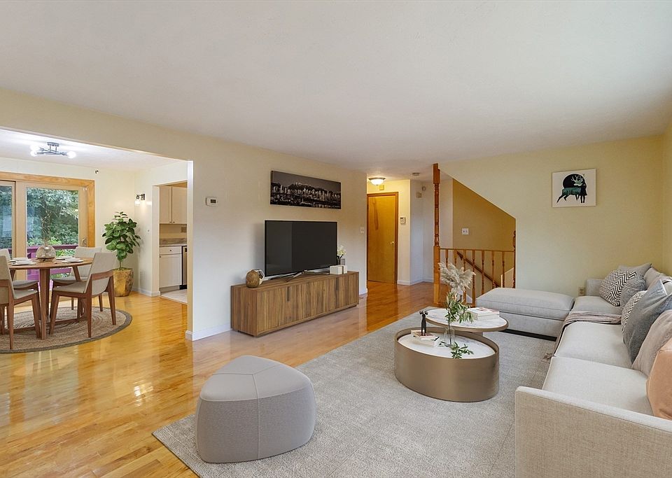 Back on Market due to buyer financing. NO HOA! Don't like Electric bills? 100% Paid off solar panels that covers the electric bill. In 2022, all windows and skylights replaced. 2023 New Water heater, new Oil tank, and deck renovated. 2024 the Kitchen was updated! Discover this charming 3 bedroom, 1.5 bath townhome on a quite cul-de-sac. Bright sun filled living room with beautiful wooden floors, open dinning area, and a sunny deck, the home is perfect for the first time home owners! Top floor has 3 spacious bedrooms and a full bath, while the lower level is fully finished that can be used as additional living space or a function space, so much versatility!Close distance to Holbrook commuter station, the JFK elementary & the High School, Randolph center. A short drive to South Shore plaza, Dog Park, Blue Hills Reservation, Costco, IKEA, and more! VA Friendly.