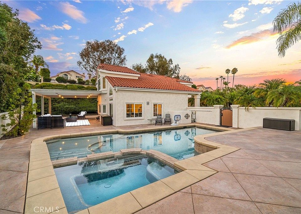 Absolutely breathtaking renovated residence situated on an interior end of a single loaded cul-de-sac street on a landmark expansive lot that encompasses nearly 20,000 square feet and includes a stunning entertainer’s wrap around pool and spa patio yard and space enough to comfortably park your RV, boat, or your latest project custom car. Truly exceptional for Marina Hills and is a must see triumph for the community. Starting with picture perfect curb appeal including high-end artificial turf, welcoming mature planting beds in a truly inviting front porch with a set of custom, elegant double doors. Stepping inside you are greeted by an elegant foyer featuring a sweeping curved custom staircase which is open to the striking light and bright formal living and dining rooms that feature great space and an abundance of natural light from large windows. Next are the completely updated chef’s kitchen and a spacious family room. With updated professional grade stainless steel appliances, bright white quartz counters – including a convenient center prep island, recessed lighting and great light from a large over sink window, a large walk-in pantry and a breakfast bar peninsula that opens to the family room this kitchen will be where all the magic happens. The family room is spacious and light and features a warm focal point fireplace. A highly sought after downstairs bedroom and a fully renovated three quarter guest bath, and a clean and bright indoor laundry room, complete the lower-level living spaces. Up the sweeping custom stairs, the primary wing features a generously sized light and bright bedroom that is compliments by the completely redone spa-like ensuite with custom tile, a quartz dual sink vanity, a soaking tub, a step-in shower, a privacy water closet door and a sizable walk-in closet. Three additional guest bedrooms and a fully renovated guest bath complete the upper living spaces. Outside you’ll find an entertainer’s dream custom hardscape pool and spa yard that has ample space to relax, entertain and play in complete privacy and comfort with a large portion that is completely covered. Located in the highly sought after, near coastal, enclave of Marina Hills enjoy access to exceptional facilities including a pool and spa complex, tennis and pickleball courts, playgrounds, various parks, access to beach reaching walking and biking trails and all of this with comparatively low HOA dues! This is the one. Welcome Home!
