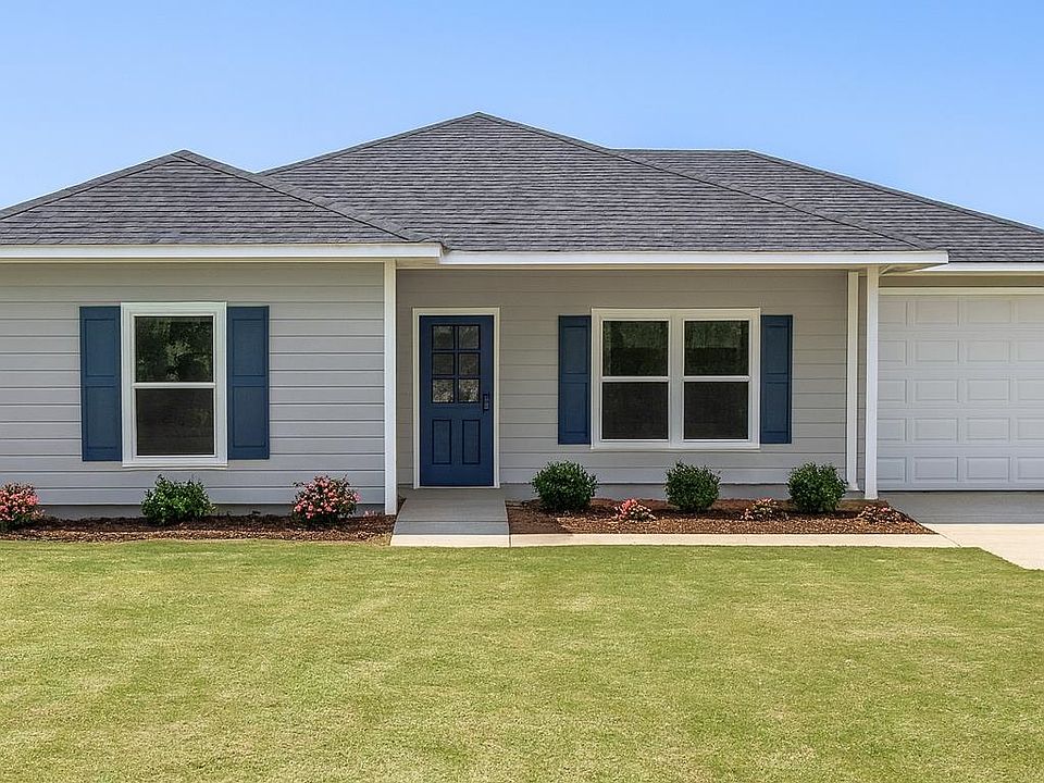 New Construction Home! This home is almost complete with a finish date of Oct 31. Carefully planned 1259sq ft home offers 3 bedrooms and 2 bathroom. The kitchen is large with pantry and a separate dining area. There is a single car garage attached. The home sits on 0.5 acres with a view overlooking a future pond. The home has Luxury Vinyl Plank flooring throughout, granite countertops in kitchen and bathrooms, a large oversized kitchen sink, stainless appliances and wood cabinets with soft close hinges. Home is approx 5 minutes from Iuka's town center but still providing a country feel.