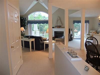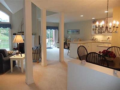 Like new, 5 year old 1948 sq foot open floor plan 2 bedroom, 2 & 1 half bath townhome located on 10th hole at Brookside Club in Monument Beach MA. Unit's large living room (17x20) has gas fireplace w/internal blower. Small den area off kitchen can be used as reading room or TV area. Master bed is 14'x17' w/fan at top of vaulted ceiling, walk-in closet, & full bath trimmed w/beadboard. 2nd floor includes bedroom, full bath, loft & large storage area. Unit features upgrades in kitchen, oversized garage, 30' deck w/stairs to backyard, w/w carpeting with tile floors in kitchen, laundry area and all baths. The basement covers roughly 1400 sq ft of space including a 700 sq ft room which is partially finished & is waiting for a buyer to decide on final design. Buyer to pay 2 months condo fee at closing to Brookside Reserve Account.