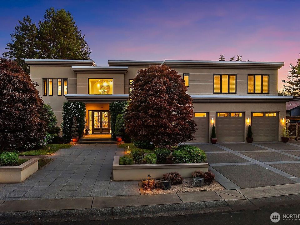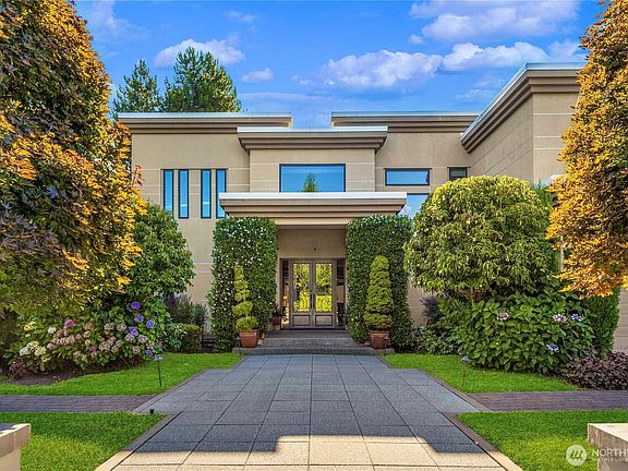 Own one of Newport Shores' most impressive homes in Bellevue's prestigious & unique waterfront canal community. This 8,020sf luxury estate sits on a ½ acre lot with 117’ of protected on-lake canal moorage* A showcase entry opens to grand 10’ ceilings on each level. 5 oversized bedrooms each with a WIC & ensuite bath, including 2 Primary Suites: one on the main floor & a true Primary Retreat with sitting area, fireplace, deck & enormous WIC. 8 Bath Rooms, TRUE gourmet kitchen has Wolf & SubZero appls, Media room, Office, bonus rooms,2 laundry rooms, INDOOR POOL+SPA & enormous roof top deck.Radiant floors & AC. Newport Yacht Club membership enjoys a Club house, pool, tennis, Marina+ more.*HOME COMES WITH A BONUS 33’ SEA RAY YACHT*(negotiable)