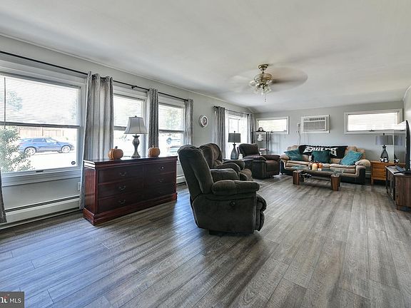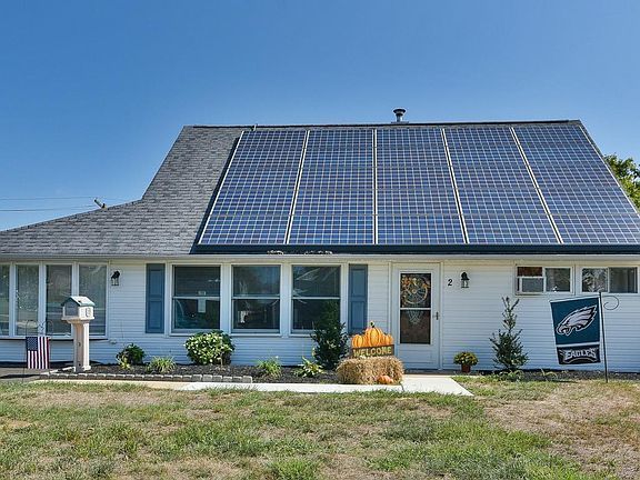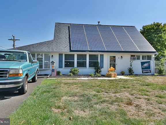 Welcome to the lovely expanded jubilee at 2 Crestwood Road in Cobalt Ridge. This home's charm is evident before you even step foot inside - you're able to see the window-lined living room, the front door garden, and the side shrubbery. You'll notice the vinyl flooring running throughout the first floor when entering the extra large living room to the immediate left of the entrance. This room is filled with natural light from all seven windows and comes with a ceiling fan and a built-in AC. The garage has been converted to give more space to the living room and create the formal dining room just beyond the pseudo-three-centered arched doorway. The door to your backyard is in the formal dining area. Beyond that is the remodeled eat-in kitchen with a built-in pantry, plenty of hardwood cabinets, all-white appliances, a ceiling fan, and a view of your fenced-in backyard. Completing this floor is a fully remodeled hall bathroom and an expanded primary bedroom. The primary room is fully carpeted and has a ceiling fan, exposed wood beams, and a double-wide closet. Upstairs are two large bedrooms. The second and third bedrooms are fully carpeted, come with a ceiling fan, have double-wide closets, and have an arched ceiling creating a unique architectural effect. There is also a remodeled full bathroom with tiled walls and flooring and a tub shower. Enjoy BBQs on the brick porch in your fenced-in backyard. This spacious area has a mature tree and a shed and is just waiting to transform into your personal paradise. Located in the prestigious Neshaminy School District, this home is just blocks away from parks, stores, restaurants, and so much more. This homes adds Green Energy to your life with cost saving Solar Panels. Solar panels are not leased! Book your time to see this home before it's sold!