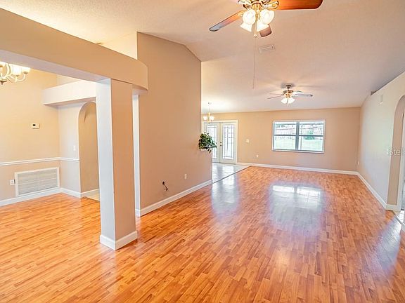 • Interior Features: Ceiling Fans(s), Master Bedroom Downstairs, Split Bedroom, Vaulted Ceiling(s), Eating Space In Kitchen, Kitchen/Family Room Combo