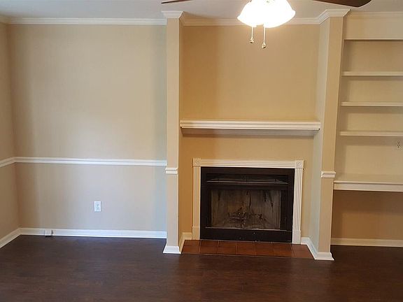 - Living Room: Fireplace, Molding, Floors-Laminate, Books, Ceiling Fan