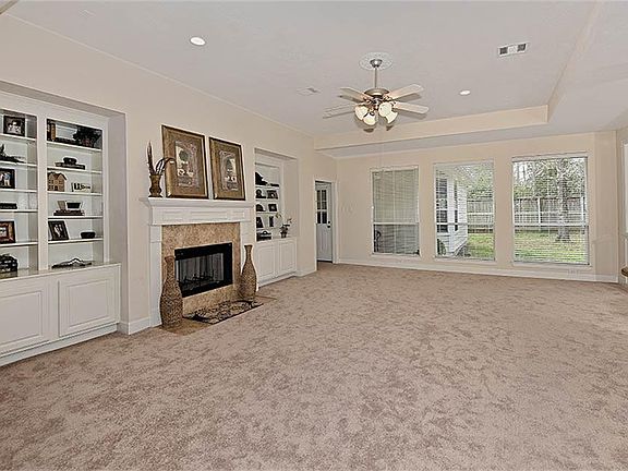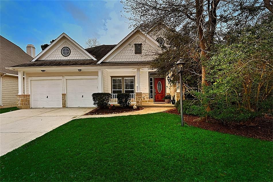 ONE STORY, 3/2/2 in the Front Porch Series neighborhood of Bonny Branch! Very open plan w extra room for study or flex space! Lovely moldings thruout w chair rail trim in formal dining; island kitchen w granite & upgraded cabinets; family room w built ins around fp, huge master and master bath w two closets, corner tub, dual vanities. Fresh paint, new roof, new HVAC!! Home is move-in ready! Walk to shopping, amenities! Front yards and neighborhood park are maintained by the HOA.