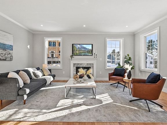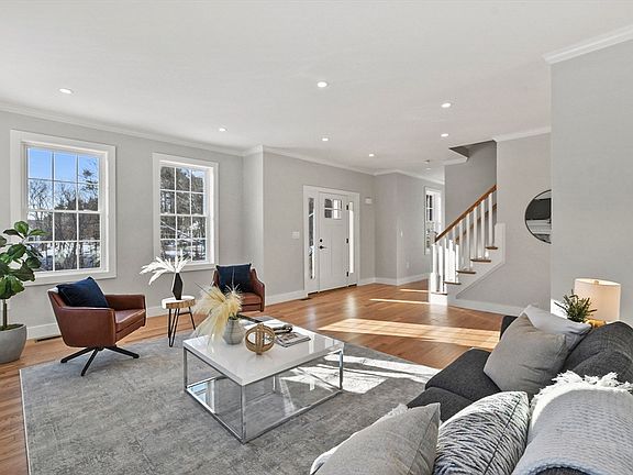 This stunning new construction home in Wilmington, MA offers 4 beds and 2.5 baths with stylish finishes throughout. A charming front porch welcomes you into a bright, open-concept living and dining space with hardwood floors throughout. The living room features recessed lighting and a cozy fireplace, while the kitchen boasts all new stainless steel appliances, quartz countertops, and a gorgeous center island. An office and a half bath complete the main floor. Upstairs, the primary bedroom offers a spacious custom walk-in closet, and the luxurious en-suite bath includes a dual vanity and a tile shower stall with rain head. Three additional bedrooms, all featuring closets, another full bath, and a walk-up attic for extra storage complete the home. The kitchen’s sliding doors lead you to the back deck overlooking your backyard. Front and side yard featuring masonry stonewall with exterior uplighting. Experience modern living! Don’t miss out on this one!