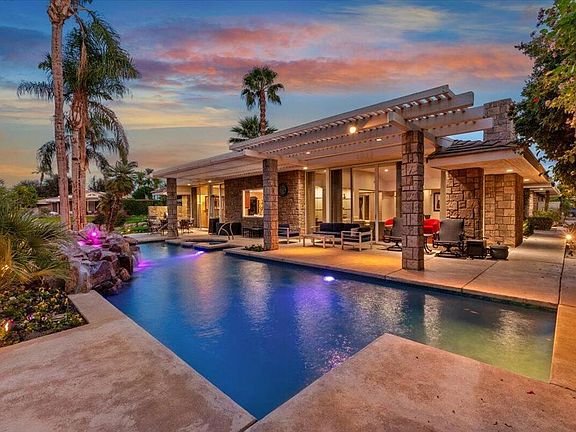 FOREVER VIEWS!!! Set within the prestigious Morningside Golf Resort, this remarkable estate offers nearly 5,000 sq. ft. of sophisticated, highly flexible living space designed for both intimate entertaining and grand, celebrity-level gatherings. Featuring 3-4 gracious bedroom suites-each with its own private bath-and a total of 5.5 beautifully appointed baths, the home exudes comfort and refinement at every turn. Soaring volume ceilings create an airy sense of scale, while expansive glass doors dissolve the boundaries between indoors and out, revealing a resort-style setting perfect for year-round desert living. The views are simply unparalleled-sparkling lake vistas, rolling fairways, and unobstructed mountain panoramas frame every moment in breathtaking beauty. Embrace the ultimate desert lifestyle. Live life. Live luxury. Live Morningside. If you'd like it more concise, more dramatic, or formatted for MLS limitations, I can tailor it further!
