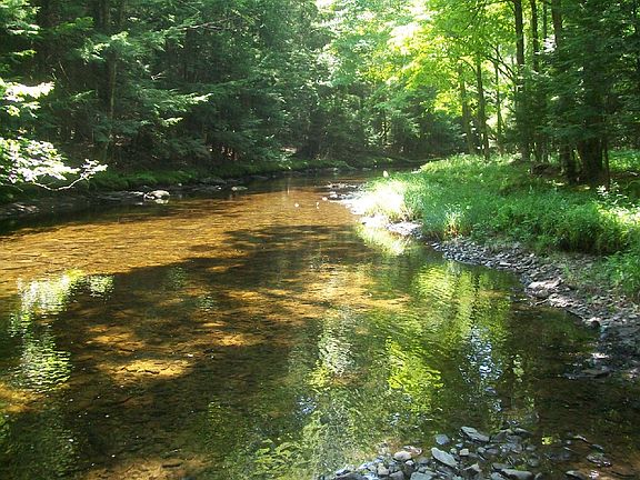 Build your own private retreat! Start with a cabin and then build your DREAM HOUSE! Very beautiful land with dramatic features in Ulster County, New York State - close to New Paltz, High Falls, Rosendale and Woodstock - a little over 2 hours from New York City. 26.89 Acres at the corner of Dewitt Road and Queens Highway in Accord, New York. Wild but tameable property with over 1200 feet on both sides of the pristine Mettacahonts