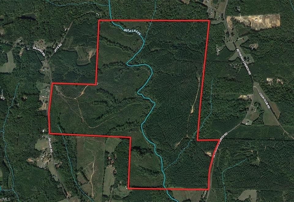 This 452 acre tract is an excellent recreational property and timber investment all-in-one. The property consist of a strong stand of 7-8 yr. loblolly pine spanning over 160 +/- acres on the western section and freshly cut early succession on the eastern portion. There is a nice bold stream known as Reed Creek running through the center of the property which is lined with mature time that was left in the SMZ buffers and multiple hardwood draws reaching giving great travel corridors into the interior of the property. The property is accessible from both Dillard Rd and Bethesda Church Rd with an extensive trail system connecting both sides. On the eastern side of the property there are high points with long range vistas giving way to unobstructed views of Hanging Rock. NO TRESSPASSING, SHOWN BY APT. ONLY.