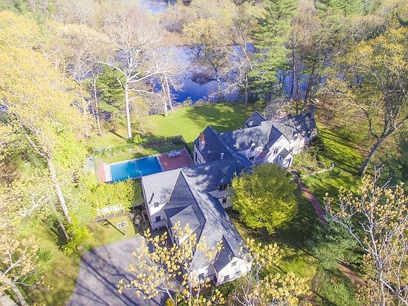 Charles Riverfront Estate, 2.8 miles to Wellesley Square! Brick and stucco 7200 s.f.English Country design seamlessly melding old & new.Magnificent waterfront views, private in ground heated pool with FP and cabana. Private boat landing.Gracious FP/ livingroom w/French doors to 3 season sky lit enclosed porch opening to manicured yard overlooking the Charles.Young and substantial newer addition includes pantry w/wet bar opening to state of the art kitchen,breathtaking 2 story family room, spectacular designed FP and hearth.Front and rear staircase.Exquisite study w/ 2 story tongue in groove barrel ceiling, spiral staircase, balcony, detailed native oak paneling and superior work space. Fireplace Master bedroom w/ french doors to exterior balcony A-1 river views, en suite bath w/ tub steam shower& sauna,double walk in closets. Sweeping circular driveway, 2.28 acres, 3 car garage. Spacious lower level game room, FP/exercise room, half bath & wine cellar! Country Manor proud to call Home!