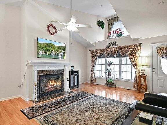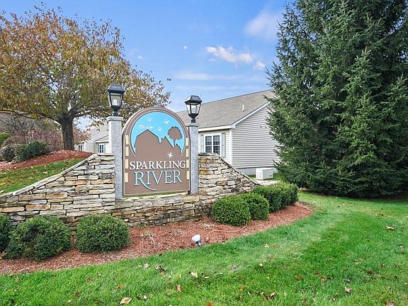 Welcome to Sparkling River, a 55 & over community! This impeccable 2-bedroom, 2.5-bathroom condo boasts a captivating open floor plan, accentuated by soaring ceilings & exquisite hardwood floors that seamlessly flow throughout the living areas. As you enter the inviting living room, you'll be greeted by a cozy gas fireplace & a picture window, creating a warm & welcoming ambiance. The LR effortlessly transitions into the elegant dining room, providing the perfect space for entertaining. The heart of this home is the cabinet-packed kitchen, adorned w/ sleek black appliances, granite countertops & a convenient breakfast bar. First-floor laundry makes chores a breeze. The primary suite features plush wall-to-wall carpeting, dual walk-in closets & an en suite w/ a shower stall, providing a private retreat. The 2nd generously sized bedroom is perfect for guests. A full bath completes this level. Discover add'l living space in the basement's bonus rm. Two car attached garage!