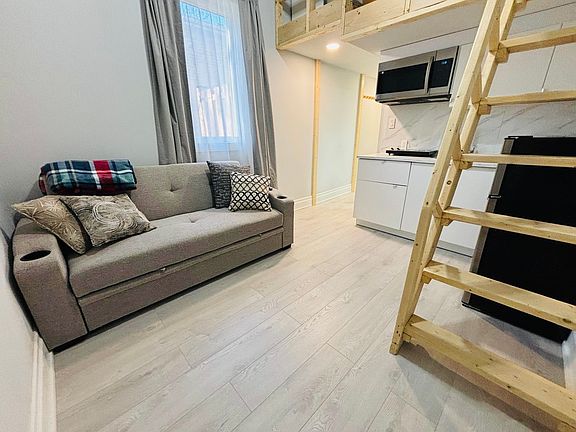 Cozy Furnished Studio, suitable for one person, with separate entrance, Move-In Ready! one bathroom, kitchen with appliances, TV, sofa bed, utilities, laundry washer, dryer and wifi all inclusive. Key location with walking distance to groceries, bus stop, park, coffee shop, restaurants. Close by to highway, public library.