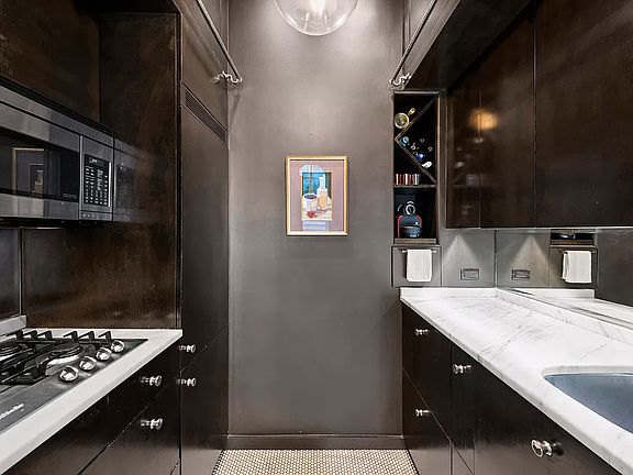 Nestled in the heart of Greenwich Village, no detail has been overlooked in this renovated Parisian style one bedroom home. Welcomed by a light filled living room decorated and designed to perfection, your attention is immediately drawn to the nearly 12 foot ceilings and beautiful crown moldings that continue throughout the home. Charming framed windows drench each room with an abundance of natural light. Relax and read a book by the windows or cozy up and light a fire in the working fireplace. The renovated kitchen features custom cabinetry that perfectly accentuates the Calacatta gold marble countertops. Additionally, the kitchen is equipped with top of the line appliances including a Miele stovetop, Liebherr refrigerator, and a Fisher and Paykel dishwasher. The home also features custom cabinetry throughout providing you with plenty of storage.