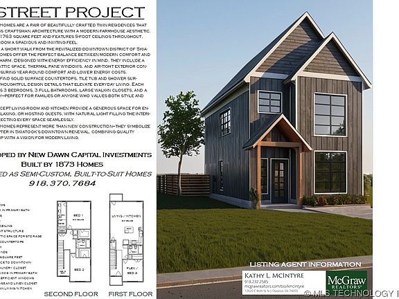Your Downtown Dream Home Awaits on the corner of 4th & B Street. Experience the perfect balance of craftsman character and modern farmhouse style in this beautifully designed two-story home just steps away from Skiatook’s revitalized downtown district. Step inside through the covered front porch and be greeted by a 19-foot-tall entry ceiling and a custom built-in bookcase that sets the tone for the home’s thoughtful