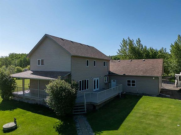 "THIS IS IT !!" This magnificent acreage is close to Whitecourt and is move-in ready !! These original owners have meticulously developed and maintained this acreage and pride of ownership is evident. Built in 2007, this home offers 2100 plus sq.ft. , and has 4 bedrooms on the second level , with the large primary bedroom having a walk-in closet and 3-piece ensuite. Second level also has another full 4-piece bathroom. Main level offers a huge stunning kitchen with plenty of cabinets, large living room, 2-piece powder room, large laundry room, large office/computer room and large formal dining room. There is also an attached heated triple garage . This home has a true wraparound deck with newer maintenance-free railings. These grounds and landscaping are truly impressive offering plum and apple trees, beautiful lilacs and spruce trees and a tree-lined driveway when pulling up to this property. There is a 30'x40' tarp shed and 2 sheds that are staying, there's a nice firepit area , there is asphalt in front of the garage and beside the house , plenty of RV parking space and the perimeter of this property is fenced. The views are amazing from this home which is less than 15 minute from town. Every tree on this 5.24 acre parcel was planted by these original owners and this package will surely impress all . All appliances are staying and are all 3years old or newer (except microwave).