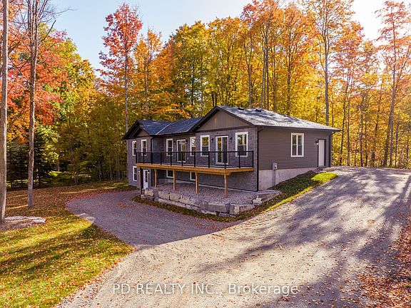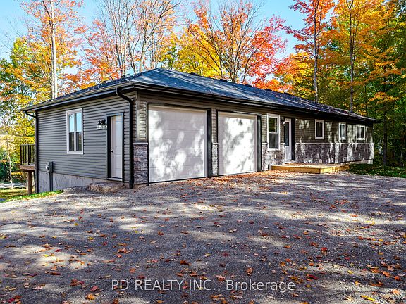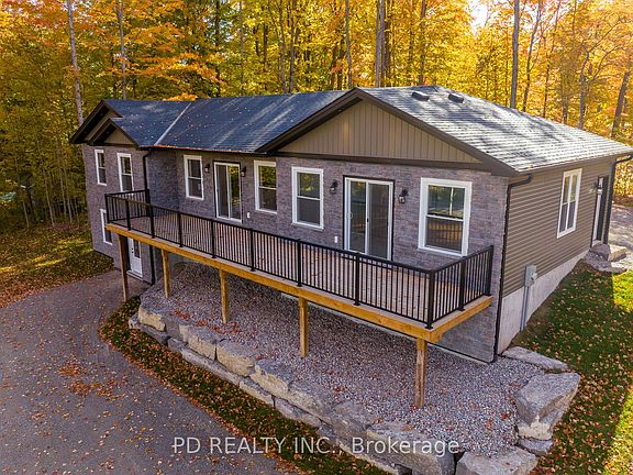 Stunning 3+2 Bed, 3 Bath Bungalow On A Beautiful Treed 1-Acre Lot! Built In 2023, This Modern Home Offers Open-Concept Living With Vaulted Ceilings, Pot Lights, And Walkout To An Expansive Deck That Is Perfect For Entertaining. Main Floor Features A Spacious Living/Dining Area, Kitchen With Granite Counters, Island With Seating, 3 Bedrooms Including Primary With 3-Piece Ensuite, And A 4-Piece Bath. Fully Finished Walkout Basement With Separate Entrance And Driveway Offers 2 Bedrooms, 4-Piece Bath With Laundry, Kitchen, And Cozy Living Room With Gas Fireplace Ideal For Extended Family Or Guests. Fully Insulated And Finished Garage With Direct Entry Into The Home, Plus Walkout Access To The Large Deck. Extras Include Natural Gas Heat, Central Air, On-Demand Hot Water, Soffit Lighting, Water Filtration System, And Large Windows In The Lower Level For Abundant Natural Light. Located Just Minutes To Hwy 407 And Approximately 1 Hour To The GTA. A Perfect Balance Of Luxury, Space, And Functionality!