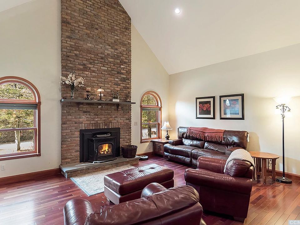 You certainly will be living on easy street in this cozy 3 bed/ 2 bath, cedar sided contemporary. The custom home features high end finishes such as beautiful wood floors, soaring vaulted ceilings, a master bedroom with walk-in closet with private access to the covered rear porch, radiant heat and central air conditioning. A separate detached 3 car garage offers a very nice one bedroom apartment above. The apartment boasts many of the same interior finishes found in the main house. You may choose to rent the apartment out and benefit from the income generated or reserve it as a private guest space. The location is just perfect. Green Lake is just a couple of miles up the road offering a small boat launch and fishing dock that is accessible to the public, the NYS Thruway is a short 2-3 minute drive, and the Windham Ski Resort can be found just 30 minutes away. Come enjoy all the Catskills offer, whether that be as a full time resident or weekender, this property has it all.