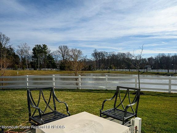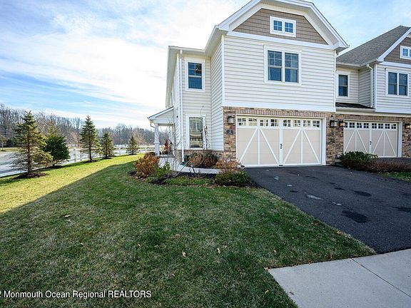 The opportunity has finally arrived to live in a unique home on the BEST lot in one of Monmouth County's most sought after communities! This ''one of a kind'' town home is located in a private area right on the POND. Privacy and relaxation are yours as you enjoy the water views from the main living area as well as your Master Bedroom. This home was professionally decorated and designed with luxury and practicality. There are hidden storage spaces, security camera system and a ''Top Secret'' Safe room. The floor plan is bright and spacious, with wood floors throughout. The gourmet Chef's kitchen was designed for entertaining with high end appliances, such as; Wolf induction cook top(2021), French Door Sub Zero refrigerator, Quartz Countertops with Waterfall Island Edge, New backsplash, all new lights and a unique Coffee Bar/Butler Pantry with Sub Zero Two drawer Wine Cooler. New blinds throughout and New Garage Door. Powder room on first floor. Upstairs you will find a large multi-purpose living space and the luxurious Master Suite and two additional spacious bedrooms. The Master features a spacious walk-in closet with custom built cabinetry. The Master Bath has a double sink granite counter and large glass shower with custom glass and tile design. The upper level also has a convenient Laundry room with custom cabinetry with granite tops. The neighborhood amenities include an award winning Clubhouse, Pool area, Fitness Center, Children's Playground, Ponds, Trails and much more! This area is conveniently located to Beaches, Award winning Restaurants, Theater, The Middletown Train Station and the Garden State Parkway.