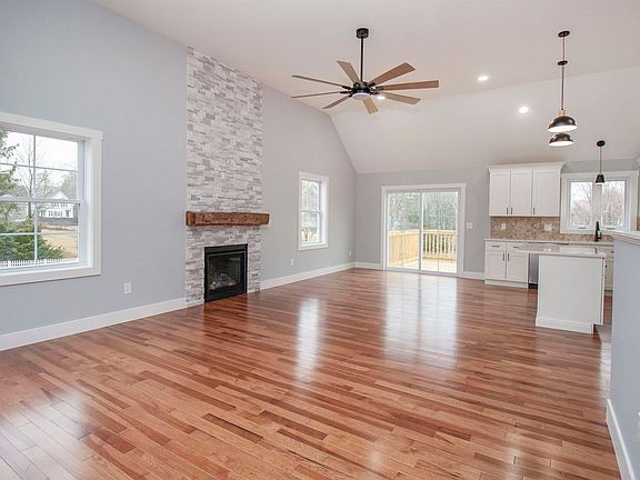 Step into this stunning brand-new modified Colonial featuring an open floor plan, soaring 12’ ceilings, and gorgeous hickory floors — no carpet anywhere! A real stone propane fireplace with a wooden beam mantel adds warmth and charm to the living space. The kitchen is a showstopper with crisp white cabinetry, quartz countertops, black hardware, and stainless-steel appliances, including a convenient drawer microwave. Quartz countertops and sleek black hardware continue throughout the home inside and out, adding a modern and cohesive touch. The spacious primary suite offers comfort and style, with ample room to unwind, while two additional bedrooms provide versatility for family, guests, or a home office. With laundry options on both floors, convenience is built right in. The bonus room is perfect for a family room, media room, work out space or whatever you need. A 2-bay garage offers plenty of storage for vehicles and gear. Outside, the level lot is a blank canvas, ready for your personal touch — think a pool, outdoor kitchen, garden and more. Nestled in a desirable location, this home seamlessly blends style and function. Close to all local amenities and the easy access to all major routes makes it a perfect commuter location into Boston, the Seacoast and the White Mountains. Schedule your tour of this brand new beauty today!