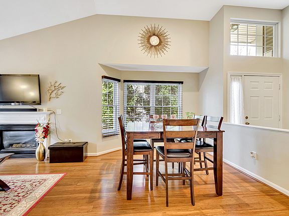 Forest Hills! Rare offering for this highly desired ranch style end unit with central air. Beautiful open floor plan in dining and living area including high ceiling, hardwood floors, gas fireplace and sliders to private deck. Modern kitchen w/ granite counters, high ventilation cooking, tiled floors and eat-in area. Laundry area includes new cabinetry and access to two car garage. Newly carpeted bedrooms including master with double vanity bath and soaking tub. Finished basement with built-in cabinets and desk and additional unfinished space for storage.