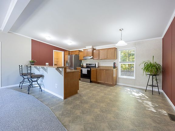 Looking to move in & have nothing to do?! Then this house is for you!! This manufactured home is lovely & thoughtfully designed for comfortable, open-concept living! All new carpet has just been installed throughout, & the house is very clean and well maintained. The corner lot gives you total privacy & having a fully fenced in back yard gives you complete privacy if you have children or dogs. I think it the nicest lot in the development as you have complete privacy. The spacious layout, with an open living room, with vaulted ceilings, kitchen, & dining area, combined with features like the large kitchen island, stainless steel appliances ( except for dishwasher), & a gas stove, make it ideal for entertaining & everyday convenience. The mudroom/laundry room off the kitchen, along with the split-bedroom design offering privacy for the primary suite, is also a nice touch. All bedrooms are very spacious & have walk in closets. Lots of storage space in this home. Having the home situated near the front of the park gives it a bit of its own space. The pet-friendly policy with breed restrictions, subject to approval & registration, is a great option for pet owners, as well. It sounds like a great opportunity for someone looking for both a cozy and functional home environment, and plenty of privacy. Easy access to the highway, shopping and Concord. Pets allowed at discretion of park mgmt. Park approval required. Great house!! Don't miss out on this amazing, well maintained home