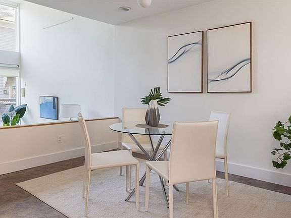 Contemporary-style living spaceClean linesSunny top-floor deckOpen planHardwood floorsPrivate patioNew carpeting