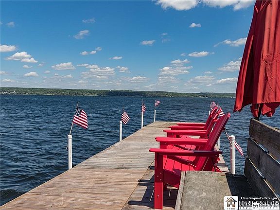 Indulge in breathtaking lake views from this exquisite mid-century modern home at the corner of North Lake and Elm in Chautauqua Institution. With over 160 feet of lake frontage, there's ample space for your shared dock and watercraft. Enjoy panoramic vistas from the kitchen, living room, family room, and bedrooms, or entertain on the partially covered wrap-around deck. Inside, the open floor plan features soaring 12' 6" ceilings, while the lower level offers a spacious family room with a stunning glass wall just 50 feet from the water's edge. Perfect for year-round living or a seasonal escape, this Chautauqua gem offers the epitome of waterfront living. Delayed showing until May 1, 2025.