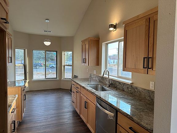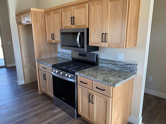 New stick built home with many upgrades including custom stain-grade cabinets, granite tops, vaulted ceilings, gas fireplace, solid wood doors, maximum fully insulated including garage with EV charger, upgraded appliances, fully fenced yard with RV access and full hookups, rear patio with gas BBQ hookup, all city utilities, natura; gas.