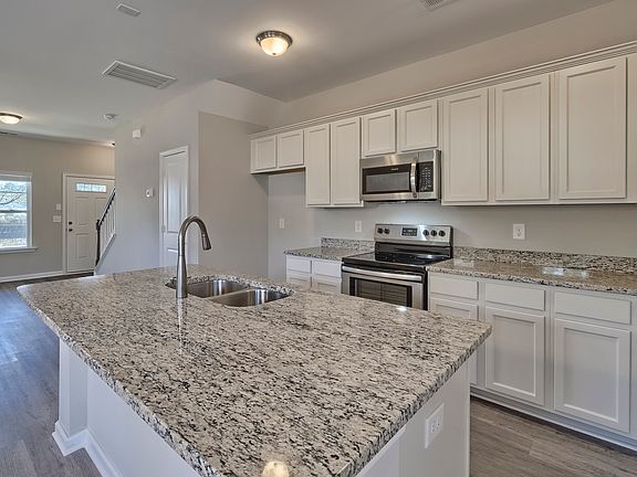 THREE BEDROOMS ; TWO AND A HALF BATHS The first-level features an open floor plan where family and friends can gather in style and comfort, and where the kitchen is just steps from both the dining and entertainment areas. The impressive kitchen offers stainless appliances, sparkling granite countertops, a pantry, as well as a huge kitchen island with sink and counter seating. An oversized laundry room, powder room and coat closet are also on the first floor. Glass doors lead to a rear covered patio, locking storage closet and backyard. Three spacious bedrooms and two full baths are tucked away on the second floor. Luxury carpet, blinds on all windows, walk-in closets and granite counters in baths... the list goes on! All our Hybrid Energy Efficient homes include Tankless w/h, Low E Windows, Dual Programmable Thermostats, Thermal Enveloping Air Barriers, Natural Gas Heat. Energy Star Frigidaire Appliances, & Slow Flow Faucets! All photos are stocked photos - contact agent for interior / exterior features.