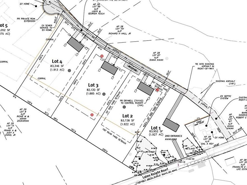 Newly approved Equestrian Estates is offering four (4) 82,000+ square foot lots with sewer and well, abutting an 8 acre horse farm, nestled in the heart of Western Cranston. Very private and secluded development which abutts an 8-acre, historical horse farm. HOA restriction in place for a minimum above grade build per home (excluding garage) of 2,500 square feet. Directions to the Site: The driveway located at 151 Laten Knight Road will currently being converted to a city road, and the sewer has just finished being installed. Please do not disturb the residents at the farm. Thank you.