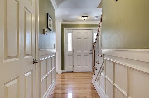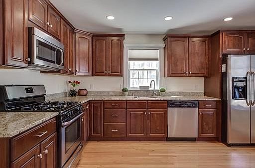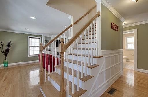 This young, sun-filled, center entrance colonial features a spacious layout ideal for both entertaining and everyday living. The stainless steel and granite kitchen offers ample counter space for cooking and preparation. Open to the kitchen, the oversized dining room is an ideal space for dinner parties and family gatherings. The front-to-back fire-placed living room boasts details including wainscoting, crown moulding and built ins. The king sized master bedroom provides a welcoming retreat at the end of the day. The finished basement provides flexible space ideal for an office, playroom, guest bedroom, or TV room. The walk-up attic provides additional expansion potential! Additional upgrades include a maintenance free deck, central vac and central air. Located on a private, quiet cul-de-sac of 3 homes, yet close to routes 495 / 95 and all the shoppes and restaurants downtown.
