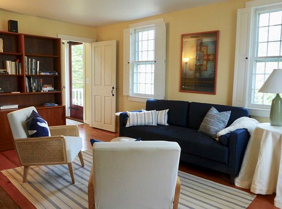 Truly charming bow-roof cape-style home with a wonderful contemporary twist created over time with additions and renovations that transformed the living spaces, added a thoughtful primary suite and completely renovated the kitchen to create the handsome, hard-working kitchen of today. Convenient location close to Morning Glory Farm and the bike trail - but also offering a tranquil and secluded site that includes a very pretty patio off the back of the house that is bordered by a waist-height garden with a stone retaining wall. The owners have tied into Town Sewer so expansion of the bedroom count is now possible. Offered Turnkey!!!