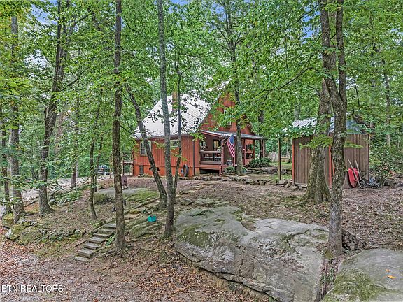 We welcome you to view this charming 2 bedroom 1.5 bath A-Frame home that is nestled privately on 2.51 acres of unrestricted land! The house gives a cozy woodland feel. The land around the property has been landscaped with rock gardens loaded with beautiful ferns and hostas and natural boulders that were native to the property. Outside sits a sauna that just needs a few finishing touches on it or you could convert it into a storage shed. There is also a carport on the property and plenty of space for parking. The kitchen and dining room area are accompanied by a wood burning stove that can be used as an alternate source of heat during the chilly TN winters. Look up! You can admire the gorgeous pine tongue and groove ceilings and rough cut exposed beams. Just off the living room, you will find a mud room accented with stone where you can kick off your boots before stepping onto the hardwood flooring. Both bedrooms are located upstairs and the master bath boasts an updated tiled in shower and vanity. One of the bedrooms has a ductless unit and the rest of the house is central heat and air. The metal roof is only 6 years old as well as the HVAC! Call today for your showing. **BUYER TO VERIFY ALL INFORMATION BEFORE MAKING AN INFORMED OFFER!**