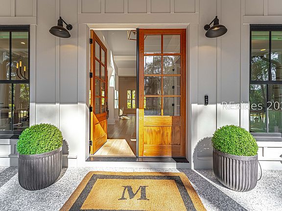 Better Than New - Built in 2023 and Sold Fully FurnishedThis stunning 2023 custom home offers five bedrooms and five-and-a-half baths, perfectly positioned on a spacious corner lot in Long Cove. Thoughtfully designed with a back-entry three-car garage, excellent bedroom separation, and a primary suite on the main level, the layout blends comfort with modern sophistication.The open kitchen anchors the home with BluStar appliances, a Miele built-in coffee maker, and Calacatta Miraggio quartz surfaces. Wide 8-inch oak floors, coffered ceilings, a striking copper ceiling detail, and a gas fireplace elevate the living spaces with timeless character.A bonus room over the garage with a full bath offers flexible use as a media room, fitness space, or additional bedroom. Designer touches include Serena & Lily silk wallpaper, Hunter Douglas blinds throughout, and advanced home technology at every turn.The spa-inspired bathrooms earned the 2023 Lighthouse Award for Best Bathroom on Hilton Head Island. A professionally installed audio-visual system features in-wall theater speakers with subwoofer, Sonos soundbar, whole-home sound, exterior hardwired cameras, and dual door chimes servicing both the living area and primary suite.Outdoor upgrades are equally impressive with extensive landscaping, expanded sod in the backyard, new palms, lemon and fig trees, hardscaping, crushed shell walkways, and path lighting throughout the front, side, and rear yard.A rare opportunity to own a fully furnished, award-winning home that truly lives like new-inside and out.