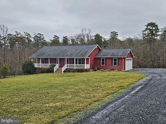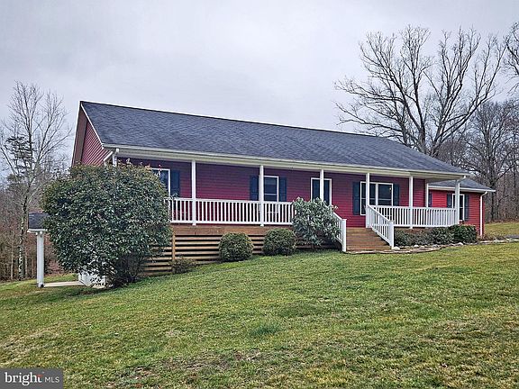 A magnificent home on 5.57 acres, with direct walk-in access to the George Washington National Forest. In a private setting at the end of a cul-de-sac, this home boasts multiple outdoor features to take in its wonderful surroundings, with a full width front porch, a large fully covered 24 x 12 south facing main back deck, an additional 14 x 10 lower back deck, and a patio area out in the back yard, with stone fire pit. Inside, you’ll find an impressive spacious great room with vaulted ceiling, recessed lighting, and beautiful hickory wood floors. There is also a full height stone fireplace and hearth, with gas log fire and a wooden mantle hewn from a hickory tree felled when the lot was cleared for building. The kitchen boasts a full suite of stainless steel appliances, and extensive hickory cabinetry. The main floor is completed by the primary bedroom with its own bathroom, plus two further bedrooms and the hallway bathroom. If all that is not enough for you, then check out the lower level, with a superb family room and walkout to a small patio area at the side of the home, bonus space behind the family room, a fourth bedroom, full bath, and an extra room suitable for a den, man cave, or study! The unfinished utility room contains washer & dryer, laundry sink, water softener, chest freezer, and plenty of storage space with some shelving remaining. This home has been extremely well maintained by the owner, and only feels like a 4 or 5 year old home. But the true beauty of this property is the expansive yard. Approx 1/3 of the lot is cleared around the house, and the rest of the property consists of gorgeous undulating mixed deciduous & evergreen woodland, including two seasonal creeks that cross the property, and leading back directly into the National Forest with the Buzzard Rock Trail passing by. The agricultural zoning and modest covenant restrictions allow for shooting, ATV’s etc, and of course the National Forest is a haven for hunters as well as outward bound enthusiasts. The side-entry garage and wide parking area provide a lot of space for vehicles if needed. There is also a good ride-in shed for mower and garden storage. The heat pump was replaced in December 2023 and comes with a 10 year parts & labor warranty. Chest freezer, metal shelving, fire pit, and the griddle and grille on the deck, all convey with the property. Also available (price negotiable) are a Husqvarna 2017 garden tractor, a Husqvarna push mower, and a Stihl 16” gas chain saw. Seller will need an approx 2 month rent-back agreement with the sale.