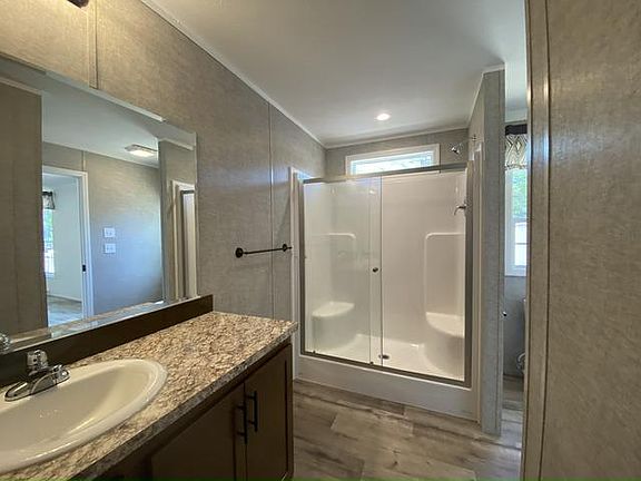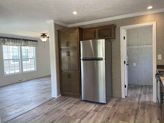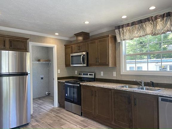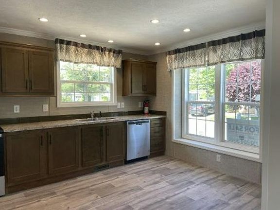 55+ age qualified community. This two bedroom, two full bathroom home is featured on a cul de sac, distancing you from heavy traffic and cars whizzing by. The quiet home has vinyl siding and new windows will keep your heating and cooling bills down. You will never run out of kitchen cabinet space in this home, this kitchen was designed for a full house and comes complete with beautiful oak cabinetry, tons of counter top space, range, dishwasher, refrigerator w/ ice maker, microwave and a stainless steel double sink. The kitchen shines bright from all angles with recessed lighting in the ceilings and a large window in the dining area. The two bedrooms in the home are extremely spacious and would make the perfect fit for a crafter, or someone needing additional office space. The master suite is very spacious and features a huge en suite show casing a walk in shower with sitting and nice linen closet. Last porch model for the summer so call now price to sell and wont last long!!