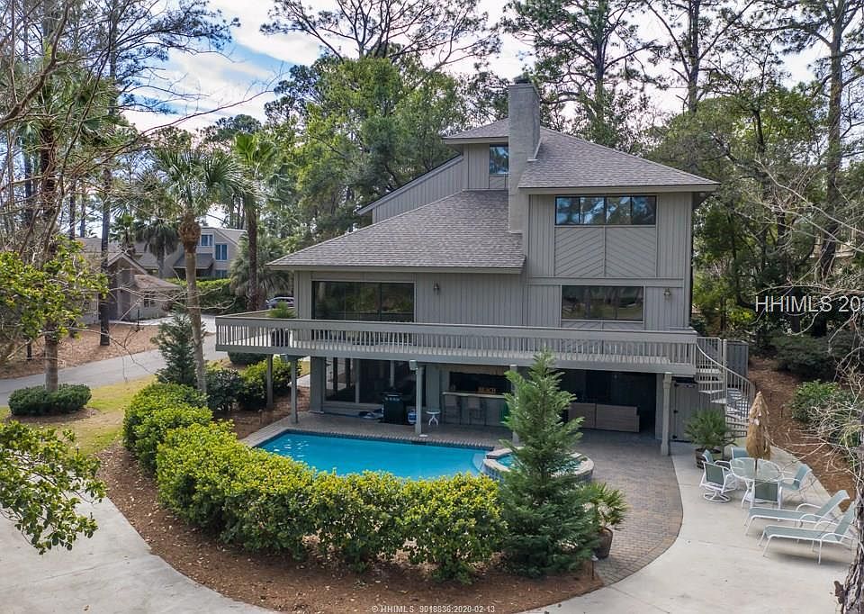 Beautifully remodeled 4 bedroom, 4 and a half bath, with an additional sleeping area, 3rd row Sea Pines ocean home located a few hundred yards from all of the amenities of the South Beach Marina Village. Updated eat-in kitchen and master bath. Open living /dining area with lots of natural light. Outdoor area features newer pool and spa, a poolside "Tiki Bar" and covered area with couches and big TV. This is a truly Great Beach House. 2019 rentals of 111K.