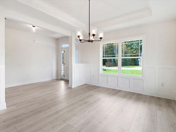 Situated on over a half-acre lot, this impressive Adams Homes 3320 Plan welcomes you with a large, inviting front porch that opens into a beautiful foyer. Just off the entry, the formal dining room features elegant tray ceilings, crown molding, and classic board-and-batten trim—perfect for entertaining and special gatherings. On the opposite side of the home, a spacious laundry room/mudroom with abundant storage offers convenient access from the garage. Step into the stunning family room and be instantly wowed by soaring 20-foot ceilings that create an open, airy atmosphere. The gourmet kitchen seamlessly connects to the living space and showcases granite countertops, a tiled backsplash, Frigidaire stainless steel appliances, a gorgeous designer range hood, wall oven, and an exceptionally large walk-in pantry—ideal for both everyday living and hosting. The luxurious primary suite is located on the main level and offers tray ceilings and crown molding for added elegance. The spa-inspired ensuite bath includes dual vanities, a large soaking tub, a tiled walk-in shower, and a massive walk-in closet. Upstairs, an open railing landing overlooks the family room below, enhancing the home's dramatic design. The second level includes three generously sized bedrooms with walk-in closets, one with a private bath, along with a spacious bonus room offering endless possibilities for a media room, playroom, or home office. This thoughtfully designed home blends luxury, space, and functionality—perfect for modern living.