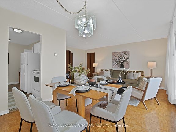 Discover comfort and convenience in one of Scarborough's most established and well-managed condominium communities. This bright, functional and freshly-painted 2-bedroom, 1-bathroom suite offers a clean, efficient layout with 1 parking space and 1 locker included. Enjoy spacious bedrooms, including a primary bedroom with a walk-in closet, and a generous living and dining area with floor-to-ceiling windows that fill the home with natural light. Thoughtful design provides ample storage throughout, a private balcony with pleasant outdoor views, and access to well-maintained common areas in a secure building with modern safety features. Nestled in the heart of Dorset Park, this family-friendly neighbourhood offers everything you need within reach--schools, parks, community centres, and everyday conveniences. Walk to nearby shopping plazas, grocery stores, and cafés, or take advantage of easy access to TTC routes, major roads, and Highway 401. Surrounded by green spaces, trails, and recreational amenities, this location perfectly balances city living with a sense of community. Whether you're a first-time home buyer, young professional, growing family, or savvy investor, this home is the ideal opportunity to own a well-maintained condo in a thriving Toronto neighbourhood.