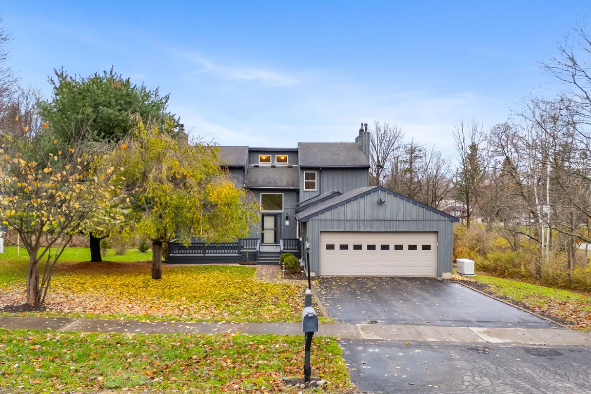 Gas fireplaceLush backyardWraparound deckModern designProfessional workspaceWalk-out lower levelHome gym