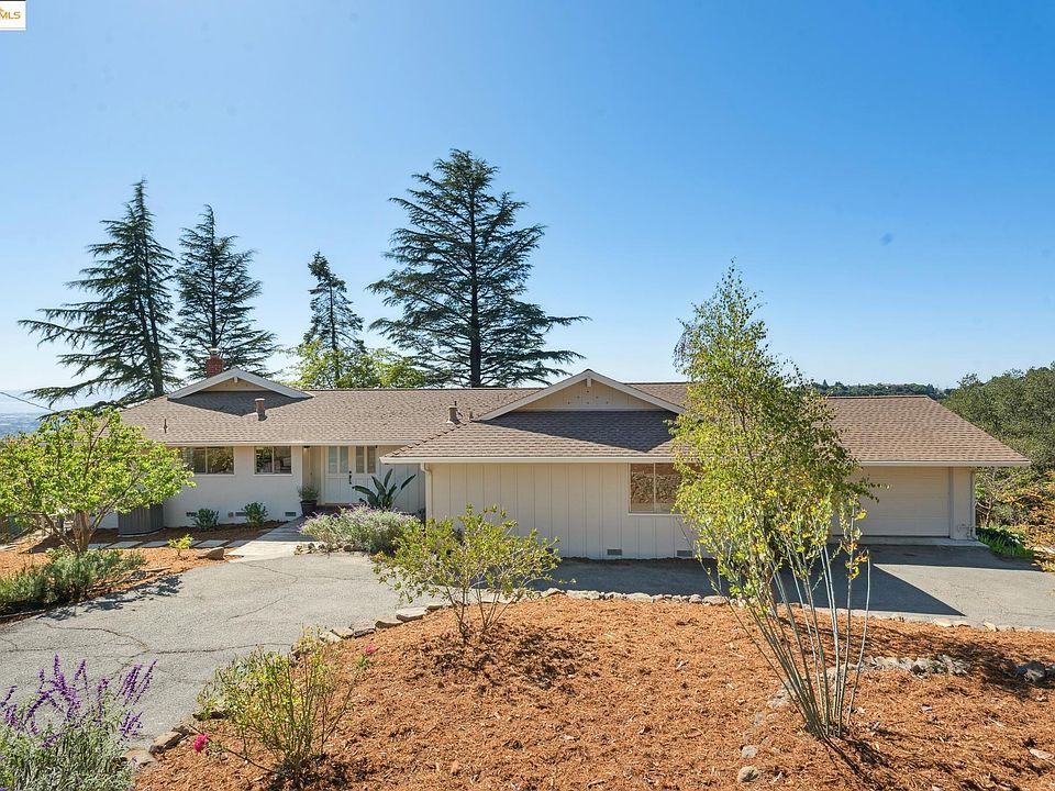 Irresistible ranchette with spellbinding vistas. Nestled among an outcropping of boulders, this gently sloped 1.6 acre parcel hosts an array of fruit trees, veggie beds, and housing for chickens. The all-level three-bedroom, two-bathroom layout takes advantage of the views and light. Living, dining and family rooms all open to the patio and rambling backyard. Vaulted ceiling and newly refinished wood floors. The sunny kitchen has quartz counters and a large laundry room adjacent. The garage hosts a 50-amp outlet for a car plug. Newer roof, seismic update, and other bonuses. Head up the street to connect to Anthony Chabot Park or Leona Open Space. Ideal for hikers, cyclists, equestrians and nature lovers. OPEN SUNDAY, OCTOBER 12, FROM 2:00-4:30PM.