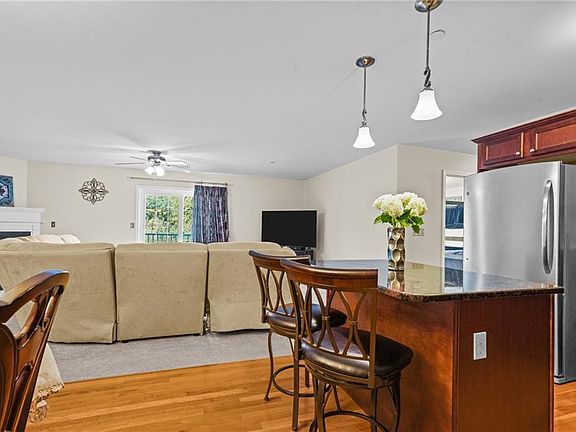 **HIGHEST AND BEST DUE BY TUEDAY, 10/10 BY 5:00 P.M. ** One level condo, end unit with 2 spacious bedrooms and 2 bathrooms. Kitchen with granite counters and stainless appliances. Open floor plan, enjoy the fireplace from both the dining and living rooms. A slider leads to a private deck that overlooks a wooded setting. The primary bedroom offers a full bathroom an oversized walk-in closet. The second bedroom has double closets. The guest full bathroom includes a laundry area. Conveniently located in Western Cranston with easy highway access, shopping, restaurants and situated just 5 miles to the Garden City Shopping Center.
