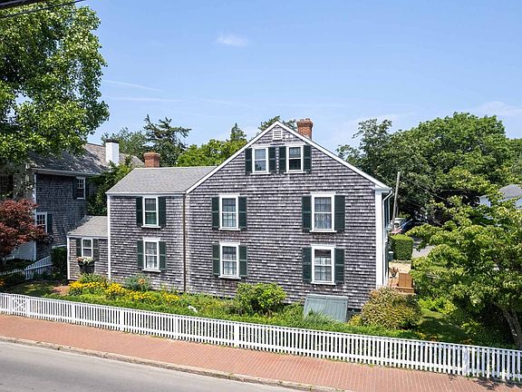 CHARMING VINTAGE HOME IN THE HEART OF EDGARTOWN VILLAGE. Nestled within lush perennial gardens and surrounded by hedges and a classic picket fence, the Charles W. Crowell House is a delightful antique home that captures the essence of a bygone era. With its origins dating back to 1760, the home boasts beams crafted from trees that once grew on the property. These timeless timbers are prominently showcased throughout the home, adorning the ceilings and walls with their enduring presence. Renovated in 2010 to incorporate modern conveniences such as updated electrical, central air conditioning and refreshed kitchen and baths, the residence has seamlessly blended contemporary comfort with its original period charm. Noteworthy features include an wide-planked pine flooring, two original fireplaces, and exquisite period millwork, as well as built-in cabinets and bookshelves. Comprising a total of four bedrooms and three and one-half baths, including a first-floor Primary Bedroom, this home offers both space and intimacy. The private backyard features a brick terrace and is enclosed to create a serene retreat for dining al fresco, unwinding with a good book, and relishing the beauty of the surrounding gardens. Located in the heart of historic Edgartown Village, this beloved antique home provides an exceptional opportunity to embrace the quintessential Vineyard lifestyle and create lasting memories for years to come.