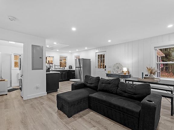 This modern, renovated, year-round single-family home in Windham will not last long! Whether you're a first-time buyer, downsizing, or looking for single-floor living, this two-bedroom, one-bath, year-round cottage with right-of-way access to Cobbett's Pond may be the one for you! This bright, modern-style cottage offers an open floor plan, modern lighting, flexible living space to accommodate guests, and a pellet stove for chilly nights. The wooded lot provides shade and privacy with the convenience of being near shops and restaurants and access to Rt. 93. Updates include Quartz countertops, stainless steel appliances, luxury vinyl flooring, and more. Can also be sold furnished. Consider this your next "glamping" spot! Take advantage of this opportunity to get into the Windham community at a fantastic price.