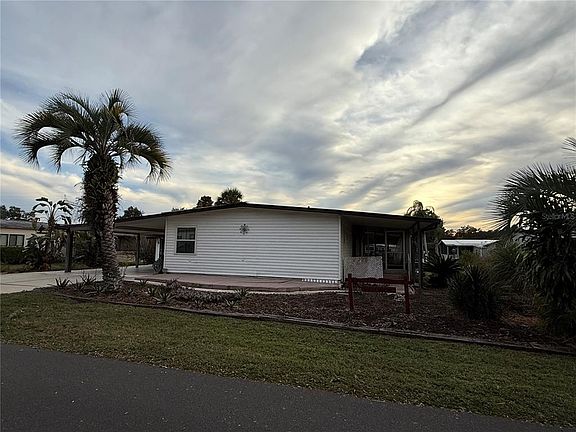 On Golden Pond sits this spectacular 2-bedroom, 2-bath home that blends comfort, convenience, and community into one inviting package. The property features a spacious back deck that wraps around to a screened porch, perfect for enjoying morning coffee or evening gatherings, while the private dock offers direct access to the water for fishing or simply soaking in the view. An oversized double carport and driveway lead into a versatile storage area complete with workshop, laundry room, and golf cart barn, ensuring ample space for hobbies and practical needs. Inside, the home boasts new windows and doors, a generous living room and dining area with a built-in hutch, and a kitchen with a breakfast bar overlooking the pond — a daily view that feels like a retreat. The primary suite is expansive, with walk-in and linen closets and plenty of room for a king-size bed, while the guest bedroom and bath provide comfortable accommodations for visitors. Beyond the home itself, residents enjoy the vibrant lifestyle of a fabulous country club community, offering more than 50 clubs and activities ranging from woodworking and gardening to veterans’ groups, horseshoes, corn hole, shuffleboard, tennis, pickleball, and fishing. Amenities include a lap pool, hot tub, locker rooms, and scenic trails with breathtaking views of wildlife, canals, and wooded areas. Just two minutes from The Villages, you’ll have easy access to doctors, dining, dancing, and endless entertainment. This home is truly ready for its new owners — a place where every day feels like a getaway and every detail is designed to enhance your lifestyle. You also get the Resident owner Certificate and Golf Certificate!! (By the way the home has so much outside living space that is not counted for in the total square footage, you could easily have a TREMENDOUS OVERSIZED GARAGE, so much storage and workshop areas ALREADY!)