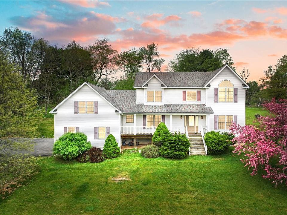 This hilltop Goshen colonial home offers 4 bedrooms, 2.1 baths and stunning views. Thoughtfully designed to maximize functionality one can sense the seamless flow upon entering from the inviting living room, to family room with cozy fireplace to kitchen, making it perfect for entertaining and gatherings. And the custom built-ins add not just character, but storage! The dining room, laundry room and lavatory round out the first floor. The bonus office space above the garage is a versatile area, offering flexibility for different needs. Head upstairs to find the master bedroom with ensuite bath, three additional bedrooms and full bath. Outback, sit on the covered patio, relax and enjoy all of nature's splendors. Close proximity to both the Village of Goshen and Garnet Health Center add to its convenience, making this a wonderful place to call home! Additional Information: HeatingFuel:Oil Above Ground,ParkingFeatures:2 Car Attached,