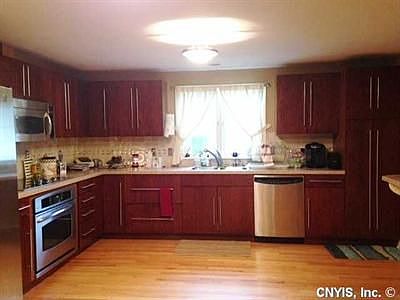 This 4 bedroom 2.5 bath Colonial is located in the popular BayBerry neighborhood which is close to Liverpool schools, shopping, parks, and major highways. The first floor features a vaulted living room, a formal dining room, an updated kitchen, a family room with a fireplace and access to a porch, a first floor laundry, and a half bath. The second floor provides a 3 spacious bedrooms, a full bath, and a master bedroom and master bath. Hardwood floors throughout. The exterior offers a 2 car side load garage, a fenced yard, and a front porch. Great potential and opportunity!